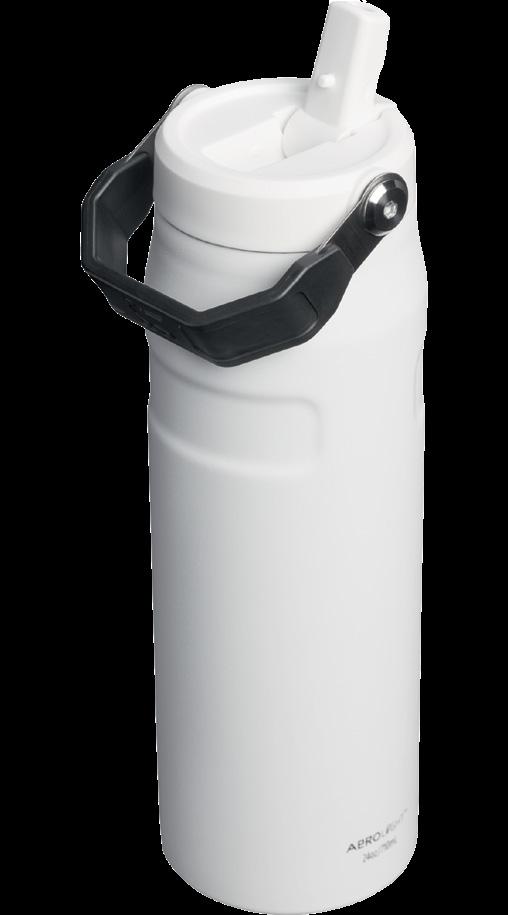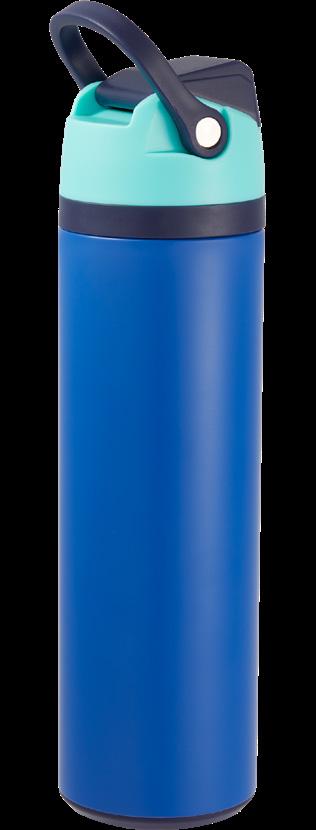 Lightweight spun-steel insulation with easy-open flip straw and folding carry handle.