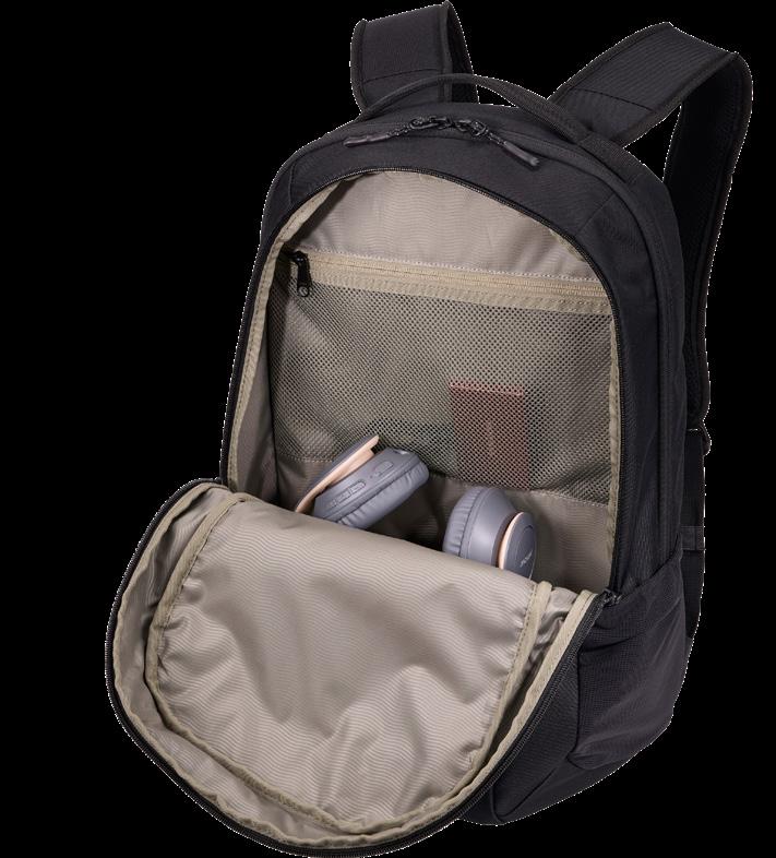 Padded sleeve fits up to a 15” laptop, with a padded back panel and side mesh water bottle pocket.