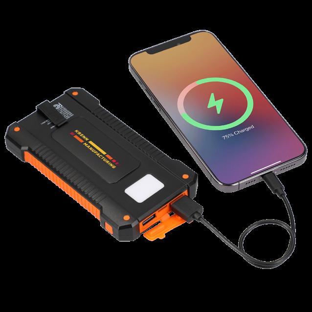 Three fan speeds with up to 10 hours of runtime and a 2,000 mAh power bank to charge your devices.