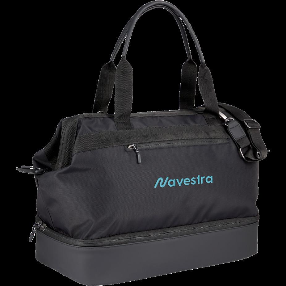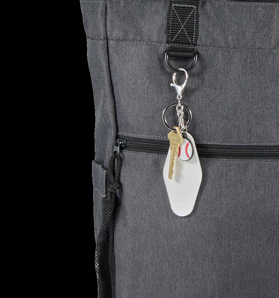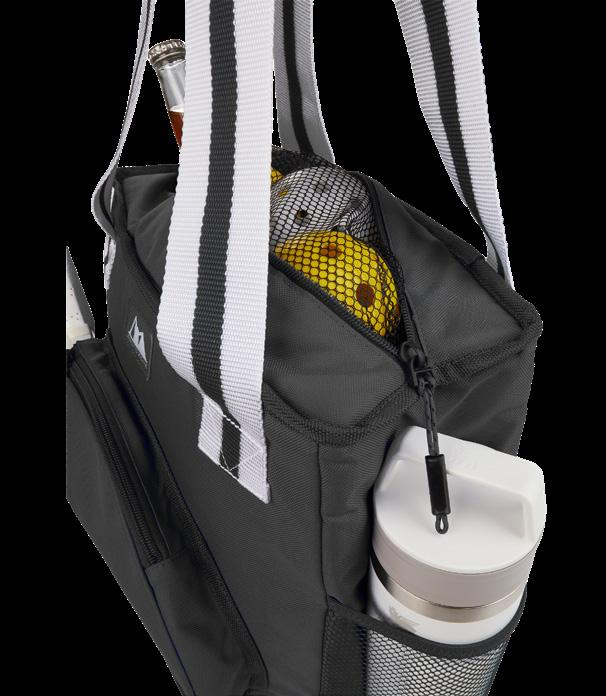 Large main compartment with 11” drop handles and a front pocket for easy access to smaller items.