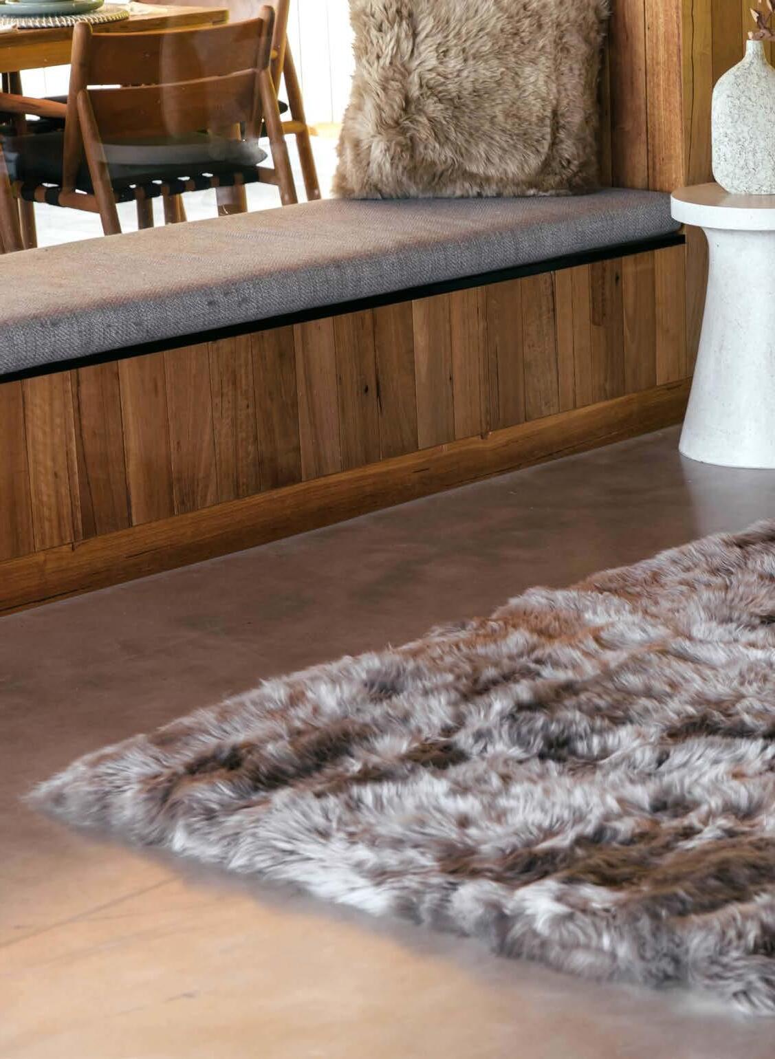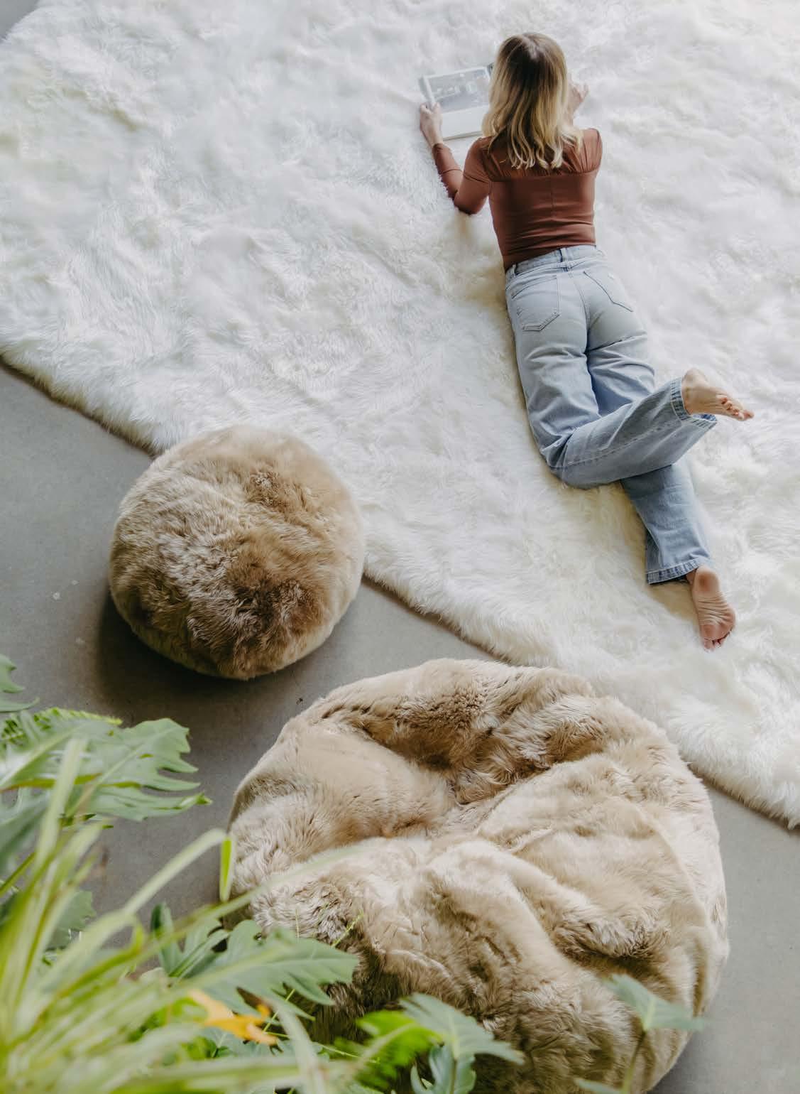 Fibre by Auskin craft a range of natural shaped rugs, design rugs, cushions, seat pads and bean bags from 100% long wool (unshorn) sheepskins.
