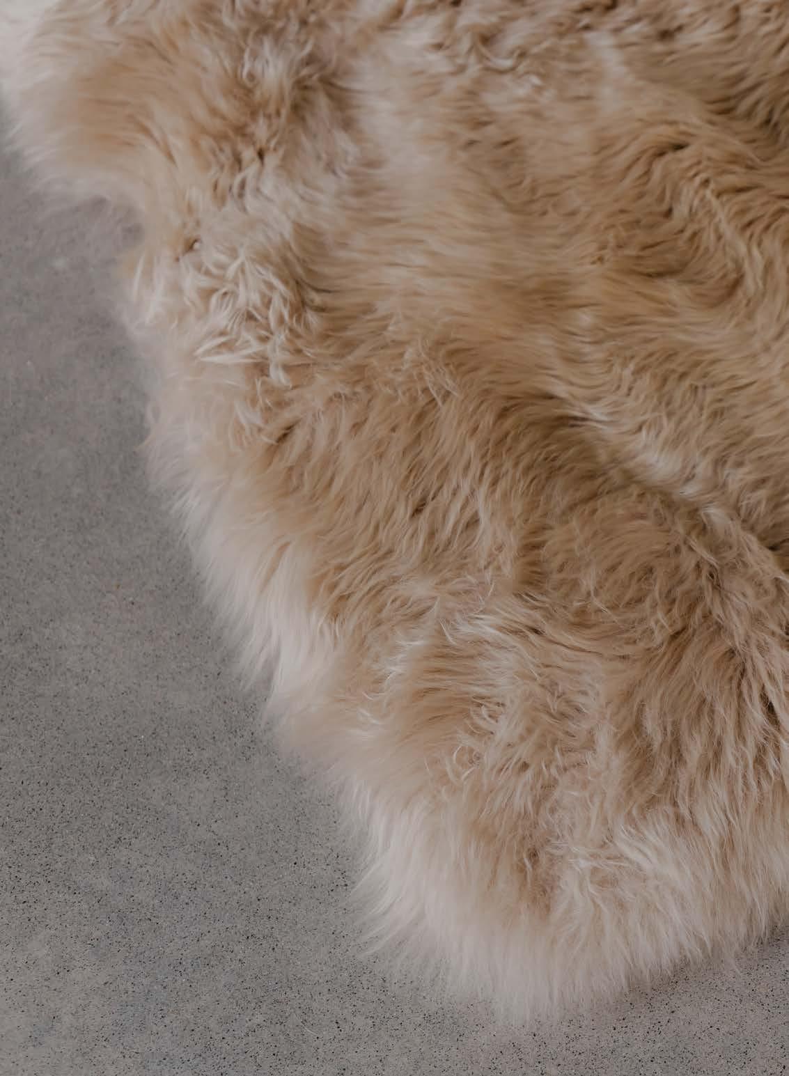 • Sheepskin enhances interiors with natural shades and organic textures, blending seamlessly into various décor styles.