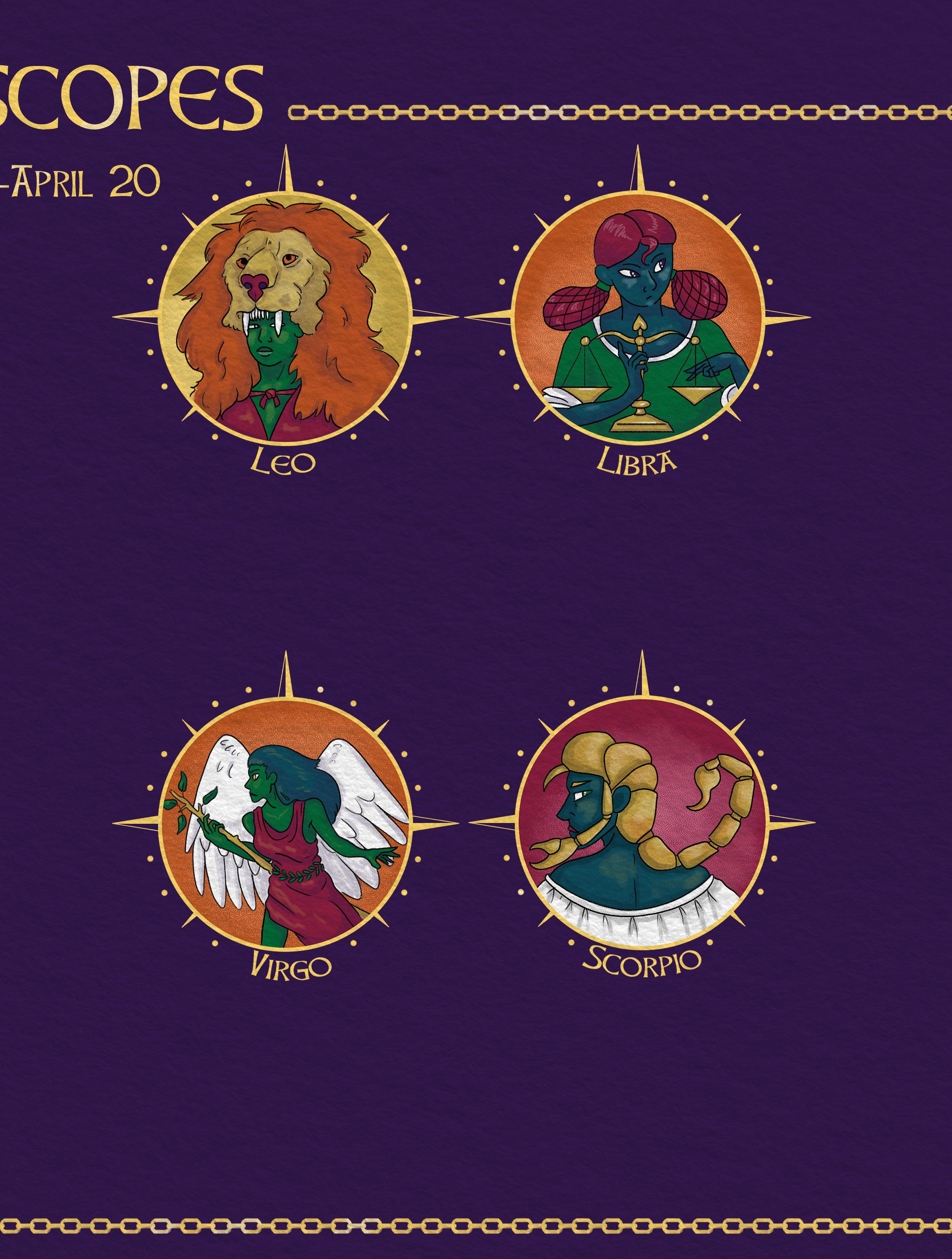 You’ve got one last shackle to throw off your mind, body, and life breath but this one is extra tight. Let yourself melt; you’ll continue on after it finally breaks. You have until May to see to that. In the meantime, don’t back down from a political debate. Sing and cook very luxurious meals in April (or if it’s not your style, have someone sing or cook for you).