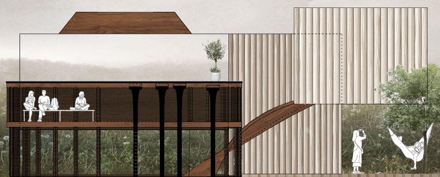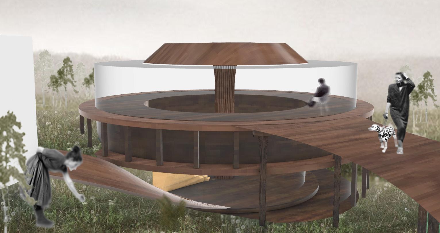 this is an organic shaped building that rests in the middle of central park. the cultural landmark pays respect to seneca village. it is a gathering place is a sanctuary for people to make connections and join as one community. the building is also used for conferences and speeches in the lower first floor that is open to the public to listen and participate. it is everything from a learning center to a gardening sanctuary.