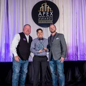IFC 2023 Diamond Sponsors 2 Field Day 9 2023 Committee Chairs 11 AAA’s Mobile App 13 ELEVATE 15 ACE Subscription 49 For the Love of AAA 58 Business Exchange 101 Spring Maintenance Huddle BC Be Seen FEATURES 20 Doc & Gayle Young Food Drive Recap 24 ATX Fest Recap 26 Fall Golf Classic Recap 28 AAA 50th Anniversary Trade Show Recap 30 How to Speak Maintenance: Focus on Training 32 Winter Maintenance Huddle Recap 33 In Case You Missed It... 34 APEX Awards Recap 36 APEX Awards Winners Book 52 Owner Management Companies Directory 59 Apartment Communities Directory 84 Supplier Directory CONTENTS WINTER 2023 ISSUE 36 APEX Awards 2023 / WINTER / 3