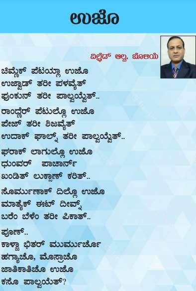 60 ವೀಜ್ಕೊಂಕಣಿ ನಾಮಾಚೊಂಪಾಟ್ಿೊಂ ಕಪಾಲ್ ಆಪೊಿ ಫುಡಾರ್ಚಿೊಂತುನ್ ಘಾಮ್ಚಲ್ೊಂ ವಾಚೆಯಾಂಅನಿವಿಸೊೊನ್ಸೊಡ್ಯಾಂ. ಪುಣ್ ಉಪಾೊಾಂತ್ ಇಲ್ಲಯ ಸವಾಕರ್ಯ್ ಘವ್ಾ ಅರಮ್ಯೆನ್ ತ್ಾಂ ರ್ಟುಕ್ ಪರತ್ ವಾಚಾಾನಾ ಕಪಾಲರ್ನಾಮ್ಘಾಲ್ಾ , ಅಪ್ಯಚ ಮಹಳೆ್ ವಿಚಾರ್ ನಾರ್ಾಾಂ ದ್ರಚಾರಾಂತ್ ಬುಡ್ಲಯಾ , ಫಕತ್ ಧ್ಮ್ಸಚೆಾಂ ನಿೋಬ್ ದ್ಲೋವ್ಾ ವೇಳ್ ಅನಿ ಜಿವಿತ್ ವಿಬಾಡ್ಚಯಾಂ ಯುವಜರ್ಣಾಂ ದೊಳ್ಳಾಾಂಮುಖಾರ್ಆಯಿಯಾಂ.ತಾಾಂಚೆಾಂ ನಾಮ್ ಪಾಟೆಯಾಂ ಕಪಾಲ್ ಖಂಡ್ಚತ್ ಜಾವ್ಾ ಫುಡ್ಯರ್ ರ್ಚಾಂತುನ್ ಘಾಮ್ಚ್ತಾ. ಸಮ್ಜಾಚೆಾಂ ಅನಿ ದೇಶ್ವಚೆ ಕಪಾಲ್ ಸಯ್ಾ! ರ್ತ್ಚ ಸಬಾಿಾಂನಿ ತಾರನ್ ಅಮ್ಯಾ ದೊಳ್ಳಾಾಂ ಮುಖಾರ್ ದ್ಲರ್ಯಾ ಸಮ್ಜೆರ್ಚ ಏಕ್ ಕೂಸ್ಲ ಉಸವ್ಾ ದ್ಲಕಯ್ಲಯಾ. ಇತ್ಯಾಂಬರಂವ್ಕ ಕಾರಣ್ಇತ್ಯಾಂಚ.ಆಮ ಕವಿತಾ ವಾಚಾಾನಾ ದವಸಡ್ಯನ್ ವಾರ್ನ್ ಕಾಡ್ಯಯಾ ಬದ್ಲಯಕ್ ಶ್ವಾಂತ್ ಮನಾನ್, ಫುಸಸತ್ ಆನಿ ವಿಚಾರಪೂವಸಕ್ ಮನೊೋಭಾವಾನ್ ವಾರ್ಾಂಕ್ಜಾಯ್. ನಾತರ್ಏಕ್ಬರಿ ಕವಿತಾ ಆಮ್ಕಾಂ ರ್ಾಂಡುನ್ ವ್ತಾ. ಕವಿನ್ಆಪ್ಯಾಂಕಾಮ್ಸಂಪಯ್ಲಯಾಂ. ತಾಾ ಕವಿತ್ಾಂತ್ಯ ವಿಚಾರ್ ಆನಿ ಸ್ತಖ್ ಅಮ ಜೊಡ್ಚನಾಾಂವ್ ತರ್ ಲ್ಕಕಾಸಣ್ ಅಮ್ಕಾಂಚ! ಜನ್ಯರ್ 29 ವೆರ್ ಆಯಾತರಾ 2023ವೆರ್ ಇಜಯಾಿಾ ರ್ೊಂ ಫ್ತರನಿಸಸ್ ರ್ವೆರಾಚಾಾ ಇರ್ಜೆನ್ ಆಪೊಿ ವರ್ಷೆಕ್ ಫಿರ್ೆಜ ದ್ಲವಸ್ ಆಚರಿಲ. ಹ್ಯಾ ಸಂದಭಿೆೊಂ ಖಾಾತ್ ಕವ ಆನಿ ಏಕ್ ವಶೇಷ್ ಚಿೊಂತಿು ಆೊಂಡುರ ಎಲ್. ಡಿಕುನಾಹಕ್ ಸಂಭರ ಮಾನ್ ಮಾನ್ ಕೆಲ. ಹ್ಯಾ ಮಾನಾಕ್ ಸಭಾರ್ ಯಾಜಕ್, ಧಮ್ೆ ಭಯ್ಯ ಆನಿ ಹರಾೊಂ ಹ್ಯಜರ್ ಆಸ್ಟಿೊಂ. ವೀಜ್, ಬ್ಜಬ್ ಆೊಂಡುರಕ್ ರಾಸ್ ರಾಸ್ ಪ್ಬಿೆೊಂ ಪಾಠಯಾತ ಆನಿ ಫುಡಾರಾಕ್ ಸವ್ನೆ ಯಶ್ಯಆಶೇತ್ಲ್.