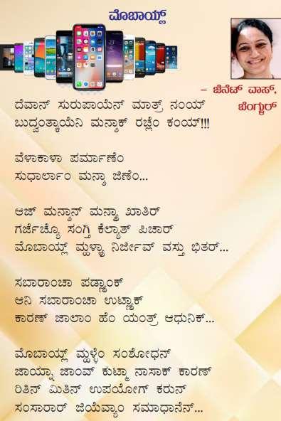 21 ವೀಜ್ ಕ ೊೆಂಕಣಿ ಕರನ್ ಆಸ್ಥ್ಾಂನಾ ಮ್ನ್ಶಹರ್.....” ಹ್ಯವೆಾಂಶಿೀದತಾಚೆಾಂನಾಾಂವ್ನಕ್ಲಡನ್ ಸಾಾಂಗೆೆಾಂ. “ಮಾಹಕ್ಲ ಸಮೊಾಾಂಚೆಾಂ ಪಾಯತನ್ ಕರ್ವೆರೊನಿಕ್ಲ.ತುಜೆಖ್ಯತರ್ಹ್ಯಾಂವ್ನ ಬೊೀಸಾಲಾರ್ಗಗಾಂಜಗುಯಾಂಕ್ಚಯತಯ್ತರ್ ಆಸಾಾಂ. ತುಜೊ ಸಾಾಂಬಳ್ಯ ವಾಡ್ಯ್ತ್ಾಂ. ತುಕ್ಲ ಕ್ದ್ಾಂಚ ಸತಯ್ತ್ , ತುಕ್ಲ ಕ್ದ್ಾಂಯ್ ರಜ್ಯ ಜ್ಯಯ್ ಜ್ಯಲಾಾರ್ಯ ದಿತಾಾಂ. ಆಮಾಂ ಬರನ್ ರವಾಾಾಂ. ಅಸಲಿ ಸ್ಥಿತ ತುಕ್ಲ ಹ್ಯಾಚ ಆಫಸಾಾಂತ್ ನ್ಹಾಂ, ಹೆರ್ ಖಂಚ್ಲ್ಯ್ ಆಫಸಾಾಂತ್ ಭಗುಾಂಕ್ಚ ಮೆಳೆ್ಲಿ. ಕ್ಲಮ್ ಉರಂವ್ನ್ ಜೂನಿಯ್ಲರಾಂನಿ ಸ್ಥೀನಿಯ್ಲರಾಂ ಸಂರ್ಗಾಂ ಕಂಪ್ಲಾಮಾಯ್್ ಕರನ್ ರವಾಂಕ್ಚ ಪಡ್ಟ್.ನಾಜ್ಯಲಾಾರ್ತಾಾಂಚೆಾಂಕ್ಲಮ್ ಉರನಾ ರ್ ಮ್ರಧ್...” ತಾಚ್ಲ್ ಮೊಗಾಳ್ ಸಮೊಾಣಚ್ಲ್ ಉತಾಾಾಂನಿ ಬಷ್ಟಾವೆಣಾಂಯಆಸ್ಲೆಾಂ. ಹ್ಯಾಂಗಾಸರ್ ಮಾಹಕ್ಲ ತಾಾ ದಿೀಸ್ ಮ್ಹಜೊಚ ಘೊವ್ನ ಫೆಲಿಕ್ಲ್ನ್ ಸಾಾಂಗ್ಲಾೆಾ ಉತಾಾಾಂಚೊ ಉಗಾಯಸ್ ಆಯೊೆ.‘ತುಕ್ಲತರ್ಧನಾಾನ್ಾಂಚತಸೆಾಂ ಕ್ಲಾಂ.ಥೊಡ್ಟಾ ಆಫಸಾಾಂನಿಚಕ್್ ರ್ಹಡ್ ಹುದಯಾರ್ ಆಸ್ಲೆ ರ್ ಸಹ್ಯಪ್ರಟಿಚ ಆಪ್ರೆಾ ಜುನಿಯ್ಲರಾಂಕ್ಚ ಶಿಕ್ಲರ್ ಘೆತಾತ್. ಕ್ಲಮ್ ಶಿಕೊಾಂಕ್ಚ ರ್ ಕ್ಲಮ್ ಸಾಾಂಬಳುಾಂಕ್ಚ ಬಯ್ತೆಾಂ, ವಿರೊೀದಿ್ನಾಾಂತ್.’ ರ್ಹಯ್ ತಾಾ ದಿೀಸ್ ಫೆಲಿಕ್ಲ್ನ್ ಸಾಾಂಗ್ಲೆಾಂ ಆಜ್ ಮ್ಹಜೆ ಥಂಯ್ ಸತ್ ಮ್ಹಣೊನ್ ರಜು ಜ್ಯಲೆಾಂ. ಆನಿ ಫೆಲಿಕ್ಲ್ಕ್ಚ ತಾಾ ಸಂರ್ಗ್ಾಂತ್ ಕಸಲ್ಲಚ ಆಕ್ೆೀಪ್ಯ ನಾತ್ಲ್ಲೆ. ತರ್ ಹ್ಯವೆಾಂ ಆತಾಾಂ ಕಿತೆಾಂ ಕರಚಾಂ? ಏಕ್ಚ ಪ್ರವಿಾಾಂ ಧನಾಾಕ್ಚನಾಮ್ಹಣೊನ್ಹ್ಯವೆಾಂಸವ್ನವ ಹೊಗಾಯಯಲೆಾಂ.ಆತಾಾಂಹ್ಯಾಂಗಾಕ್ಲಮ್ ಶಿಕ್ಲೆಾಾಂ,ಆನಿಹೊಮ್ನ್ಶಹರ್ಮಾಹಕ್ಲ ಸಾಾಂಬಳ್ ವಾಡ್ವ್ನ್ , ಬರ ಥರನ್ ಟಿಾೀಟ್ಕರ ಲ್ಲಮ್ಹಳಿಳ ಭಾಸ್ದಿತಾ. ಹ್ಯಕ್ಲಯ್ ನಾ ಮ್ಹಣೊನ್ ಪರತ್ ಹ್ಯವೆಾಂ ತಾಾಚ ಕಷ್ಟಾಾಂತ್ ಪಡೆಚಾಂರ್ಗ ರ್ ಹ್ಯಚ್ಲ್ಖುಶಕ್ಚಖ್ಯಲಿ್ಮಾನ್ಘಾಲುನ್ ಮ್ಹಜೆಾಂ ಕ್ಲಮ್ ಉರಂವೆಚಾಂ? ಹೆರ್ ಕಡೆನ್ಕ್ಲಮ್ಯಮೆಳಾನಾಮ್ಹಣ್ತ್. ತರ್ ಆತಾಾಂ ಆಸ್ಲೆಾಂ ಕ್ಲಮ್ ಉರವ್ನ್ ಮಕ್ಲೆಾ ಬರ ದಿಸಾಾಂಕ್ಚ ರಕ್ಚಾಂಚ ಸಮ್ಾಣಚೆಾಂ ಮೇಟ್. ಅಸೆಾಂ ಚಾಂತುನ್ ಹ್ಯವೆಾಂಮ್ಹಜೆದಳೆಧಾಾಂಪ್ೆ. ದುಸಾಾಾ ಘಡೆಾ ಮ್ನ್ಶಹರನ್ ಮಾಹಕ್ಲ ಆರಯ್ಲೆಾಂ ಆನಿ ಮ್ಹಜ್ಯ ಹಧಾಾವರ್ಯೊೆ ಪ್ರಲಂವ್ನನಿಸಾಾಯೊೆ! ಎದಳ್ರಕೊನ್ಹ್ಯಡ್ಲ್ಲೆ ಮ್ಹಜೊ ಮಾನ್ಆನಿನಿಸ್ಳಪಣಮ್ನ್ಶಹರನ್ ಆಫಸಾಾಂತಾೆಾ ಮೆಜ್ಯರ್ ಮಾಹಕ್ಲ ನಿದವ್ನ್ ಲುಟೆೆಾಂ!!! ರ್ಹಯ್ ಹ್ಯಾಂವೆಾಂ ದುಸೆಾಪ್ರವಿಾಾಂ ಮ್ಹಜೆ ಥಂಯ್ ಘಡ್ಟಚಾ ಅಸಲಾಾ ಅನಾಹುತಾಕ್ಚ ಸೊತಾಾಃ ಬಲಿ ದಿೀಾಂವ್ನ್