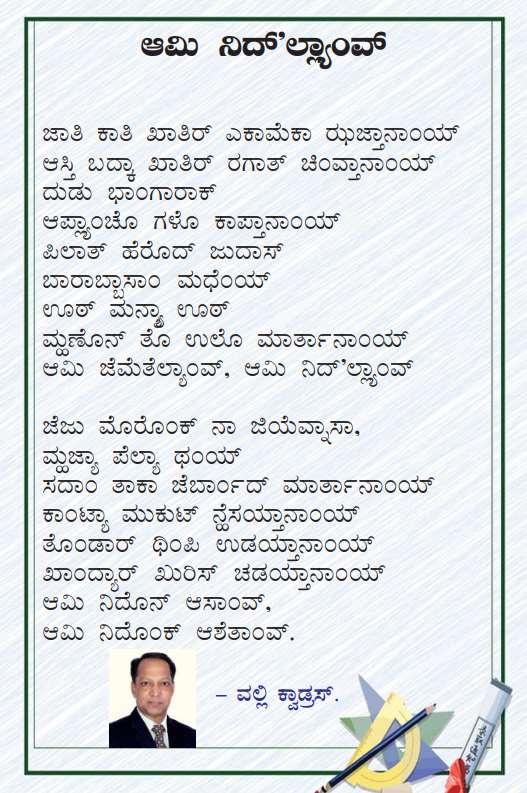 9 ವೀಜ್ ಕ ೊಂಕಣಿ ಮೊಗಾನ್ಜಡ್ನ ರ್ವರಡ್ಯಾಚೊ ವೈಸಎಸ್ಚೊ ಅಧಾಕ್ಷ್ ಜಾವ್್ ತ್ಲ್ಣಾಂ ಸೆರ್ವ ದಲಿ. ಅಶಾಂ ಯುವ ಮುಖೆಲಿ ಜಾವ್್ ತ್ಲ್ಣಾಂ ರ್ವವ್್ ಕ್ಯಲ್ಲ. ಹ್ಯಾ