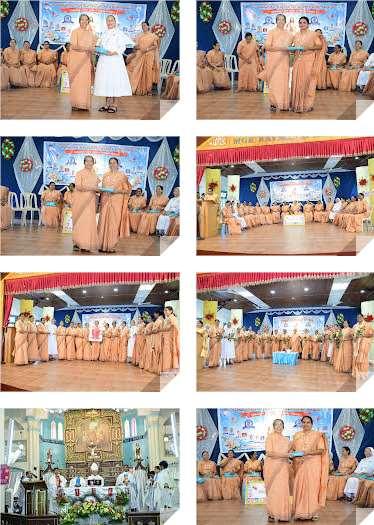 The Golden sisters were greeted followed by the Holy Mass. Sr Rose Celine,theSuperiorGeneralSrRose Celine felicitated the Jubilarians to the accompaniment of citation and music, with garlands and flowers andwithagiftasthetokenoflove. She invited them to spend more timeatthefeetofJesuslikeMaryof Bethany,andasthey movetowards Diamond years, fix their gaze in heaven, and recall what Fr Founder said “The only unchangeable, unfailing friend, companion, coworker who gives you courage, health, strength in your work is Jesus Christ, God man who is