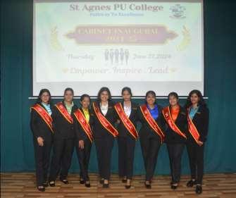 Sr Dr Maria Roopa, the guest of honour congratulated the newly elected student council 2024-25 andinspired them totake initiatives in bringing about transformation and laurels to themselves and the college. In her message, she motivated them toget inspired and grow into inspirational leaders. Emphasising on the importance of continuous upgradation ofoneself inthiseraof innovation sheurgedtheAgnesians toworkhandinhandupholding the valuesof service andcompassion in continuing the rich legacy of the institution