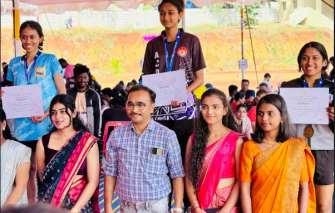 the energy high. These activities provided an excellent opportunity for students to showcase their talents, build team spirit, and enjoy thethrill offriendly competition. The program was beautifully compered by Mrs. Deeksha, Hindi Lecturer at the college, while Mrs. Sujatha,KannadaLecturerextended a warm welcome to all attendees anddistinguished guests. Mr. Amcil Fernandes, Physical Director, took charge ofthe spot games, ensuring the students had a fun-filled experience that kept them engaged and entertained throughout the day.