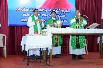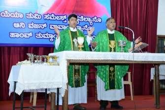 Mercy, followed by Sorrowful Mysteries. At 4:30 p.m., the Eucharisticcelebration waspresided over by Re. Fr Eugine D’Silva, Redemptorist, and concelebrated by Rev.FrPeterGonsalves, Principal of St. Lawrence English Medium School.