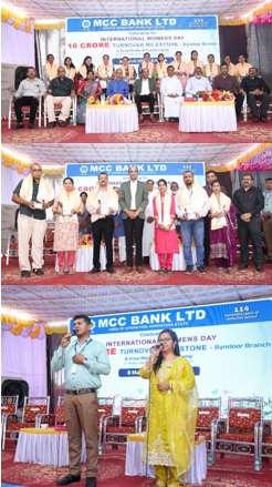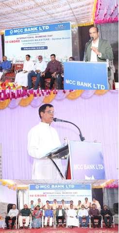 In his Presidential Address, Chairman Sahakara Ratna Mr. Anil Lobo said that the Byndoor branch achieved the target of ₹10 crores in just six months, which is a historic achievement for MCC Bank. Every year the bank celebrates Women’s DayintheHeadoffice,butthisyear it was decided to celebrate International Women’s Day at the Byndoor branch on achieving the 10-crore turnover.