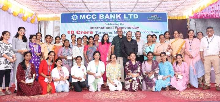 MCC Bank – Byndoor Branch marked a significant milestone by crossing ₹10 Crore in business turnoverwithinjustsixmonthsofits commencement. To commemorate this remarkable achievement, the Branch organised a grand celebration along withInternational Women’s Day observance and a Free Medical Health Camp on Sunday, 8th March 2026, at the Byndoor Branch premises. The programme was presided over