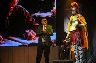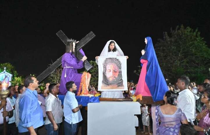 Prior to the drama, a brief stage programme was held. The dignitaries present on the dais included drama writer Dr Ronald Serrao, Fr Valerian D’Souza, parish priest of Rosario Cathedral, drama directors John M Permannur and Jerome Moras Angelore, Floyd D’Mello Cascia, vice president of KNSand production director ofthe drama, Pamela Santos, general