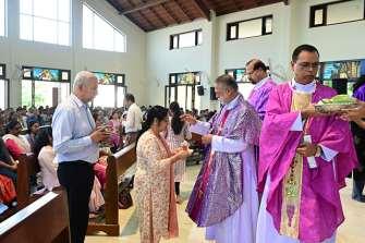 Inhishomily,FrRichardreflectedon the Gospel message of love, emphasizingthatlovecarrieswithit adepth ofemotion thattranscends ordinary human experience. Reflecting on the teaching of Jesus to‘lovethyneighbour asthyself’,he noted that genuine love for fellow human beings brings about peace and harmony in society. At a time when theworld longs for unity and healing, he said, it is this love that leadstolastingpeace.