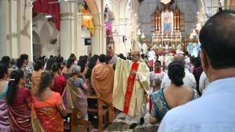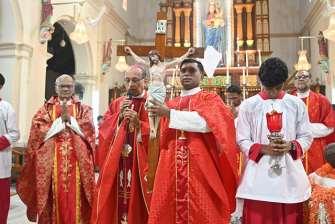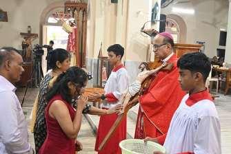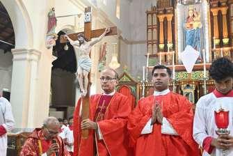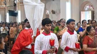 Monteiro, officiated the blessing of palms at Mother Mary’s Grotto. Following the blessing, the congregation engaged in a solemn procession, meticulously reenacting thetriumphant entryofJesus Christ into Jerusalem. This event commemorates the moment when the populace greeted Him with palm branches, exclaiming, “Hosanna to the King of Kings.”