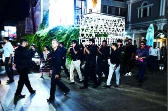 On the final day of the 10-day festival, idols of Lord Padmanabhaswamy, Narasimha Moorthy and Krishna Swamy were carried in a ceremonial procession from the temple to Shanghumugham Beach, about six kilometres away. The route passed directly across the airport’s runway, reflecting its origins under the erstwhile Travancore royal family, whichbuilt theairport in1932. Accompanied by caparisoned elephants, traditional percussion and members of the royal lineage, the procession paused briefly near therunwaybeforecontinuingtothe Arabian Sea forthe ritual bath. The return journey unfolded after dusk in a torch-lit procession, marking thecloseness ofthe festival.