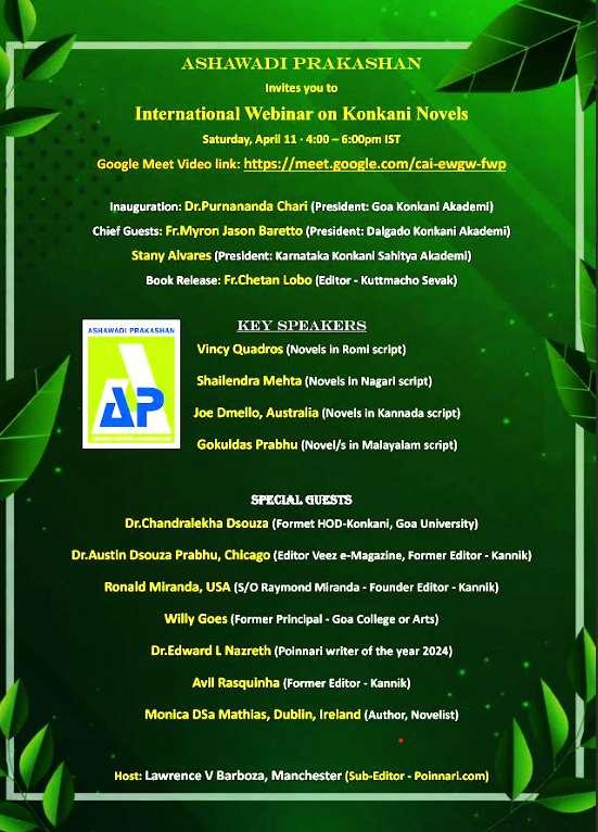 Richard Alvares for ‘Fithuri’ in the Konkani Short Stories category. The award presentation ceremony will be heldon Sunday April 26at 5 pm at Udyavar church premises in Udupidistrict.Ministerforbackward classes welfare and Kannada and culture Shivraj S Tangadagi will inaugurate the programme. The event will be presided over by Academy president Joachim Stany Alvares. MLA of Kaup constituency Suresh Shetty Gurme andbishop of Udupi diocese DrGeraldIsaacLobo will attendaschiefguests. The ceremony will also feature cultural performances including traditional dances of Kharvi, Siddhi and Kudubi communities, brass band, and a Konkani musical programme.
