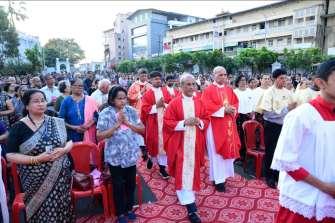 Following the procession, the resident priest, Rev.Fr.Denzil Lobo, alongside Parish Priest Rev. Fr. Clifford D’Souza and Rev. Fr. Vijay