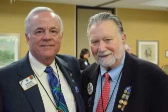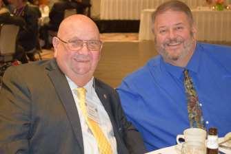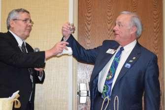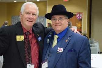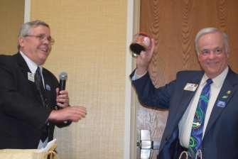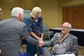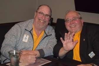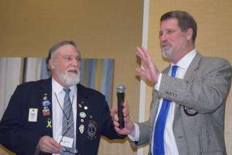 Lion Mike Dreska on left shaking handswithcurrentLionPresident RonSheahan.
