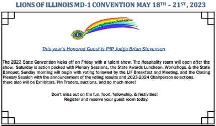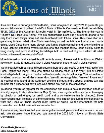 If you have any questions regarding the convention, please do not hesitate to contact myself or Lion Jeff Cholewa (lionjeffreycholewa@gmail.com).