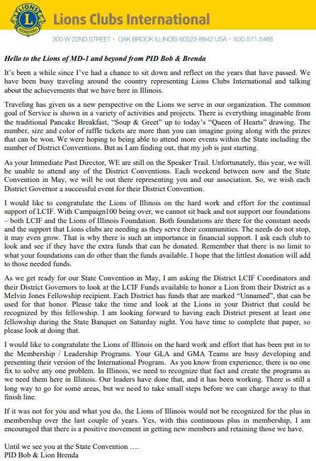 The District 1J Convention is a little over a month away and we are looking forward to seeing you! I understand we have had some issues with posting info on the MD1 site, so I'm sending this to you personally.