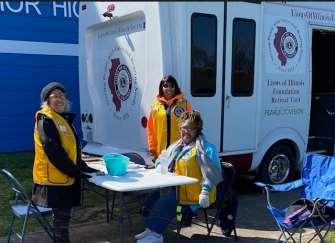Mounds Lion Retha Eurales and Lion Anne Terry with Orange Hood register participants for the vision and hearing screening van. The Mounds Club were host for the Lions of Illinois Foundation Vision and Hearing Van on March 20th 2023 in Cairo at the High/Jr. School from 2pm - 6pm.