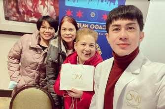 Lion Anne Terry(Orange Hood) and Lion Retha Eurales(Black Hood due to cold weather) along with participants registering for the screening.
