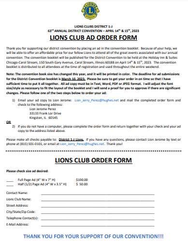 • Program Ads - If you are interested in placing an ad, information on sizes and pricing is attached. Contact PCC Jerome Perez at Lion_Jerry_Perez@hughes.net. Deadline for ad/page submissions is March 10th.