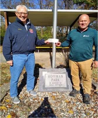 HighlandLionsClubTerasurerLion Denis Foehner gave a check for $1500 to Highland Parks and Recreation Director Mark Rosen to go towards the renovation of Hoffman Park in Highland.