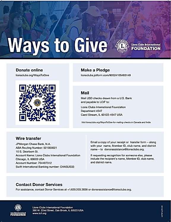 Pre-printed Applications are available from Lions International. If your club would like some assistance with getting new members or updating your social media platforms, please to not hesitate to reach out for assistance