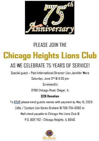 We have continued our community outreach to leaders in the Garfield Ridge, Archer Heights and Clearing communities of Chicago. If you have any family or friends in that area that you think would make good Lions please send their contact information to: jointhelionstoday@gmail.com. We have some interest; we need to get them together so we can organize. If you have any prospects in this area, please let us know. We would like to finish this club in Governor Tony’s year. We finished one club’s two-year rebuilding process and have begun another’s.