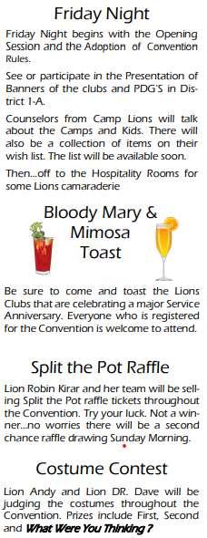 To see other events or if you need more information visit District 1A web page at www.lions1a-us.org.