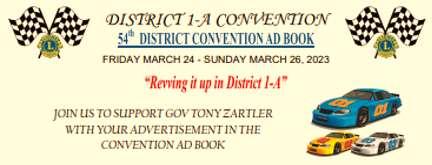 March 24, 25, and 26 District 1A Convention Reving it up in District 1A is the theme for the convention. Please sign up early.