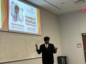 We had the pleasure of speaking to Harold D’Souza at the University of Cincinnati’s Combatting Human Trafficking class on April 04, 2024. D’Souza shared with us his experience of coming from India to the United States to work a job with great salary benefits and getting duped once he and his family arrived. He and his family were victims of human trafficking, specifically labor trafficking, and debt bondage.