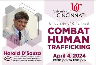 We had the pleasure of speaking to Harold D’Souza at the University of Cincinnati’s Combatting Human Trafficking class on April 04, 2024. D’Souza shared with us his experience of coming from India to the United States to work a job with great salary benefits and getting duped once he and his family arrived. He and his family were victims of human trafficking, specifically labor trafficking, and debt bondage.