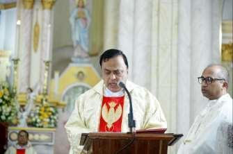 Rev.Msgr.AlbertoNapolitano,from ApostolicNunciature,Indiareadthe Papal bull of appointment in Latin. Chancellor of Diocese of Karwar