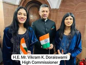 LanishaandDelisha,theVazsisters, who were known as “Dubai Little Stars”havebeenawardedtheTitled as "MelodiousKonkaniStars" and recently awarded as “The best InternationalsingersofKonkani stage” The Vaz Sisters were given the rare honour of presenting a Konkani song for the first time in history of the official 75th Republic Day celebrations on Friday 26th January 2024, at the High Commission of India in London. It was a moment of great honour and pride for Konkans, especially the globalKonkanicommunity.