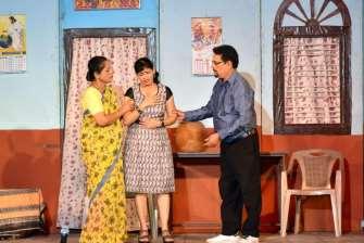 of her elder brother. At this office, the son of a businessman falls in love with her and later gets pregnant before marriage. The situation createshellinthewidow's humble happy home. How the various characters in the drama conspire to solve the sordid situation is unimaginable and captivates the audience from beginning to end. It is a two and half hour drama with mind blowing dialogues and comedy that was relished and enjoyed by the packed hall reverberating to cheers and
