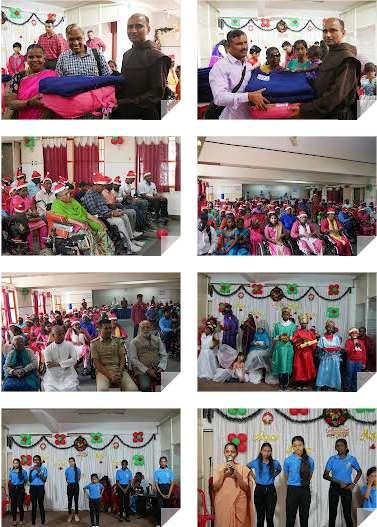 blankets and other Christmas gifts andgoodies toallthose present. Dhyana Jyothi Trust established by the Carmelite Fathers and Good SamFoundation by DavidandNelly Pichard work for the well-being of the differently abled especially the visually impaired.