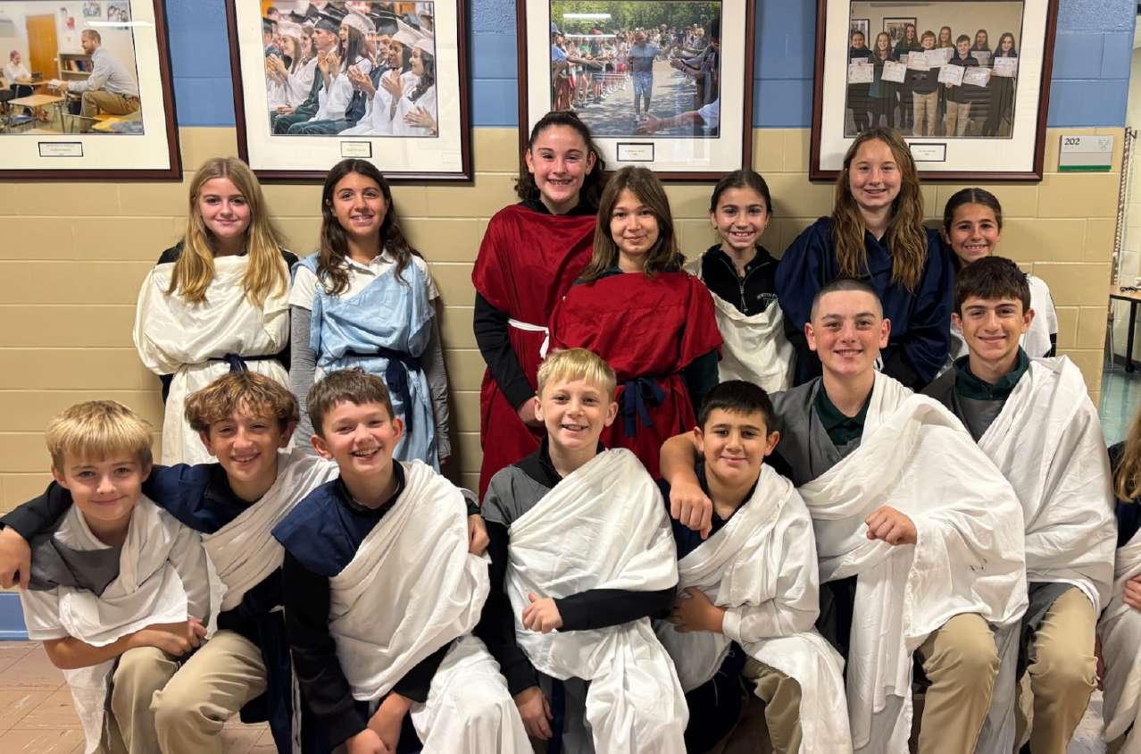 The Augustinian principle, “If you aspire to great things, begin with the little ones,” guides the design of the Middle School experience. Students are encouraged to see that even small acts of curiosity, kindness, or reflection have an enduring impact, and that the habits, attitudes, and decisions cultivated in everyday experiences lay the foundation for future scholarship, leadership, and service. Through incremental challenges—whether collaborating on a project, participating in a lab, performing a piece of music, or reflecting on a scripture passage—students practice responsibility, perseverance, and integrity, learning that moral and intellectual growth happens step by step.