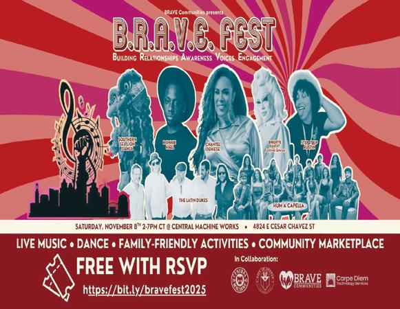 – In a time when many are seeking connection and hope, BRAVE Communities, a local 501(c)(3) nonprofit dedicated to Building Relationships, Awareness, Voices, and Engagement (BRAVE), invites everyone to come together for BRAVE Fest 2025, a free, familyfriendly celebration of music, art, and local talent. (Continued On Page 24)