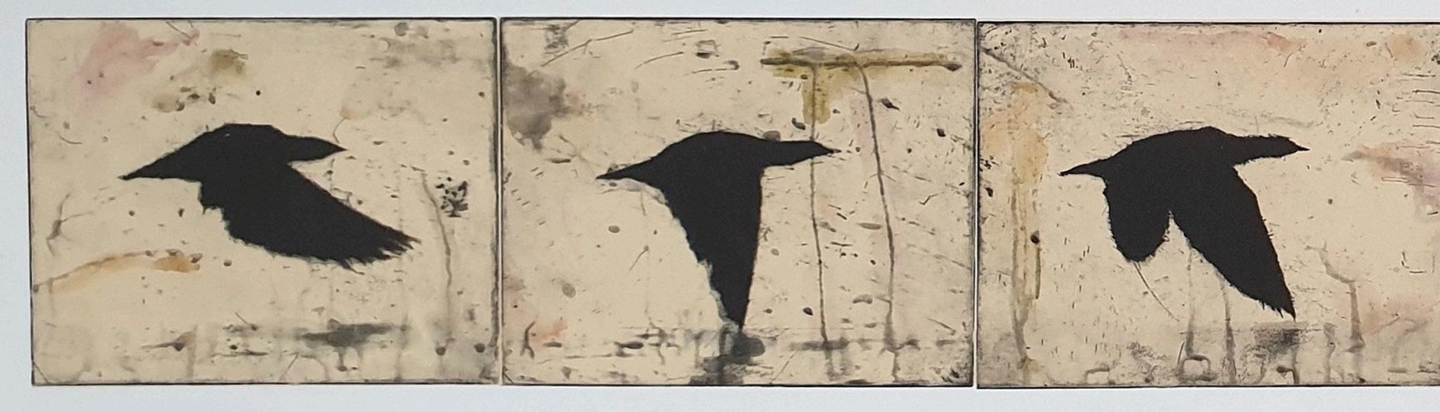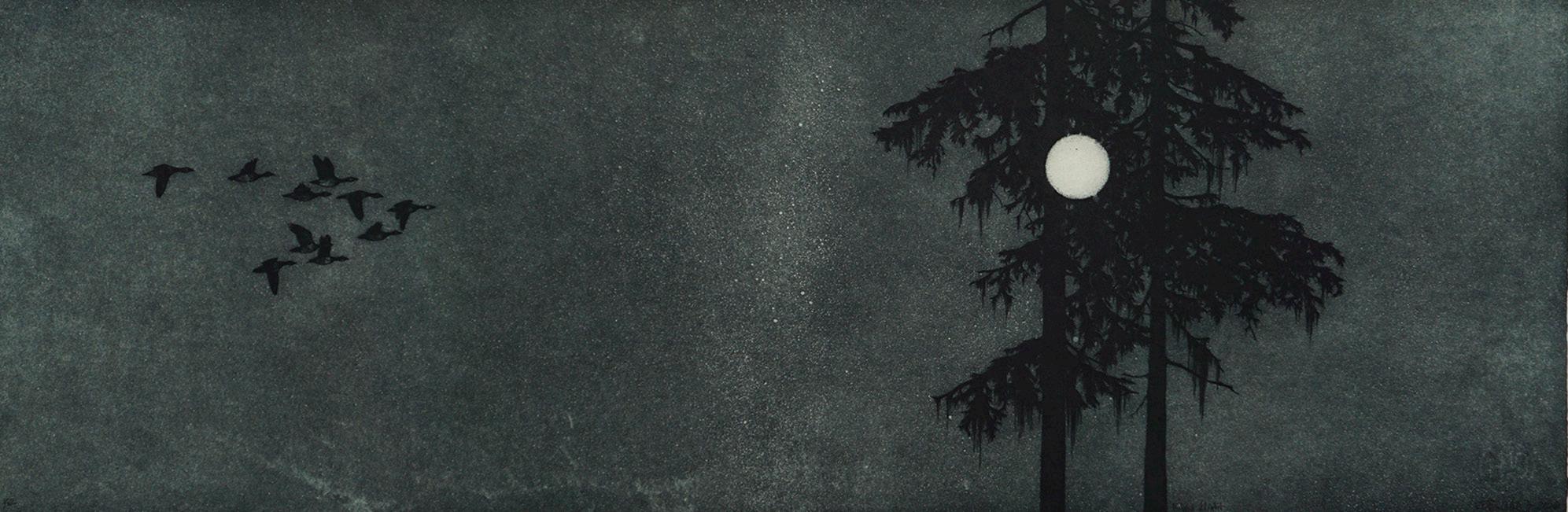 Shoegazer 2021 photogravure chine-collé on vintage 1970 Japanese silver paper from the Estate of George Baldessin, mounted on Fabriano paper 24 x 17.5 cm edition 20 Courtesy of the artist and Tolarno Galleries, Melbourne