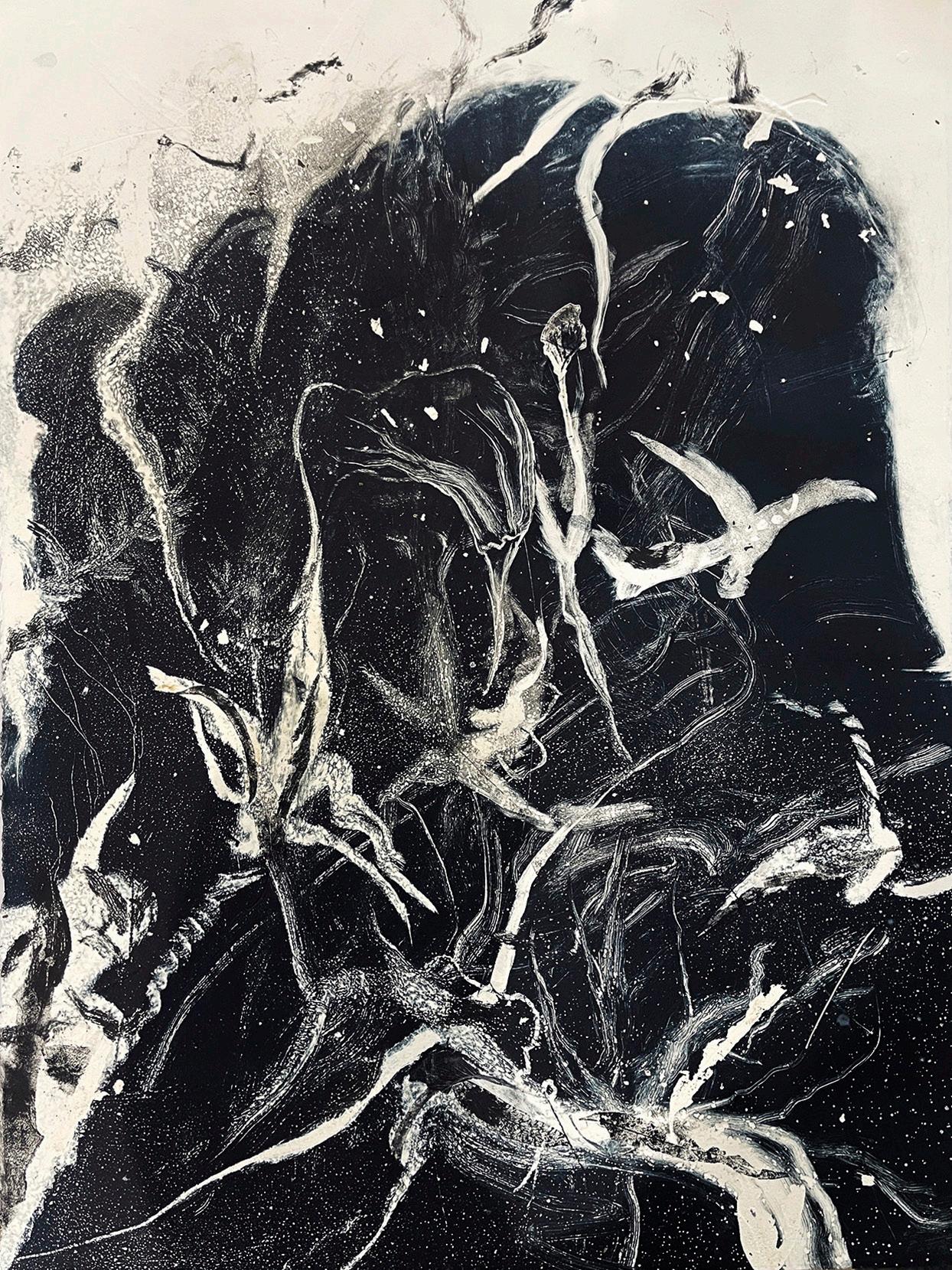 Into the cave – no.3 2022 monoprint and linocut 76 x 56 cm unique