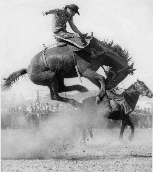Dick was of the era were cowboys competed in every, or at least many, of the rodeo events. His storied career entails an ARRA Steer Wrestling title, and he was a skilled trick rider, but his great love was bucking horses. “He just loved rodeo in general” reminisces his daughter Anita, “however he was most proud of his bronc riding. And bucking horses were the love of his life ” As his competing years slowed down, Dick ventured into owning bucking horses. His standout performer ‘Red Terror’ being renowned all over the countryside