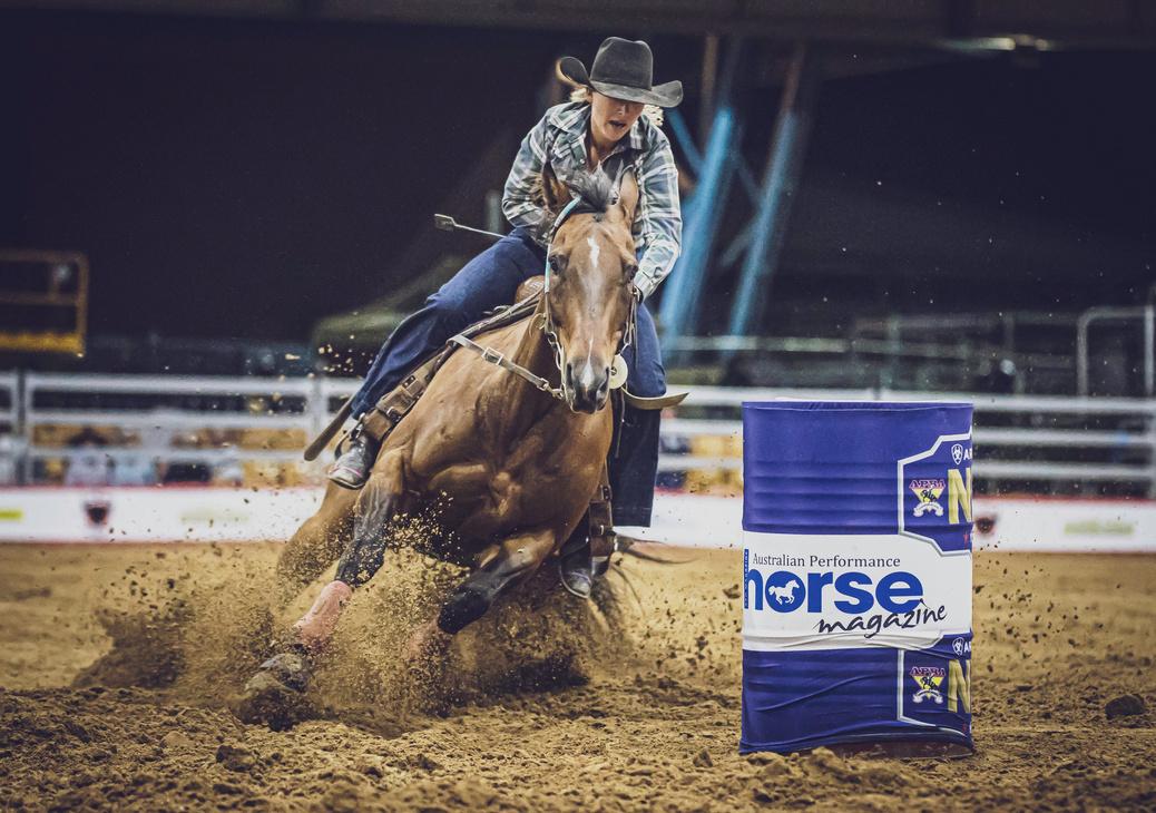 Jane Ryan made it her second win in the famous arena, in a hotly contested Ladies Breakaway Roping. Her average time of 6.95seconds edged her in front of Moonbi roper Lauren Smith by merely 0.1 seconds. While current Australian champion Leanne Caban and her standout gelding Akka Dakka dominated in the Ladies Barrel Racing. A strong performance by Leanne in the Ladies Breakaway Roping also saw her sashed as the Allround Cowgirl.