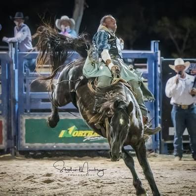 Ross Ford owned bucking horse, Out Of Pearl, helped Michael Johnston and Tristan Braden to first and second in the Saddle Bronc Riding respectively. Richmond cowboy, Deon Lane, made the straight trip along the Flinders Hwy and straight to the pay window after holding off veteran cowboy Dave Worsfold to win the Bareback Riding. The bulls beat most of the cowboys in the Open Bull Ride, with Victorian Sam Woodall claiming victory over the only other scorer Cameron Southern.