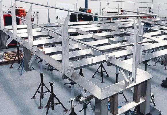 • Grade 304 for platforms, stairs, handrails and dry-area frames where formability, structural efficiency and hygienic finishing were key.