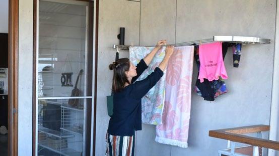 The result is a stylish, highly functional clothesline that discreetly folds away when not in use yet provides ample space for everyday laundry. Installed on cement sheet stud walls, each 1800mm x 600mm unit accommodates up to six lines, maximising usable space in compact terraces while remaining easy to operate and maintain.